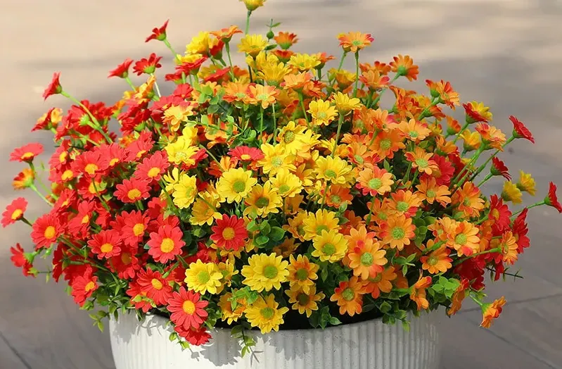 💥$9.98 On Sale Today Only🌼- Artificial Outdoor Sunset Mums Flowers - UV resistant, Waterproof, Windproof
